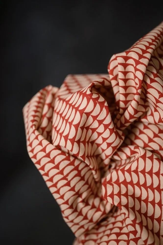 Merchant & Mill's Red Semi Circle Indian Block Print on Organic Cotton.